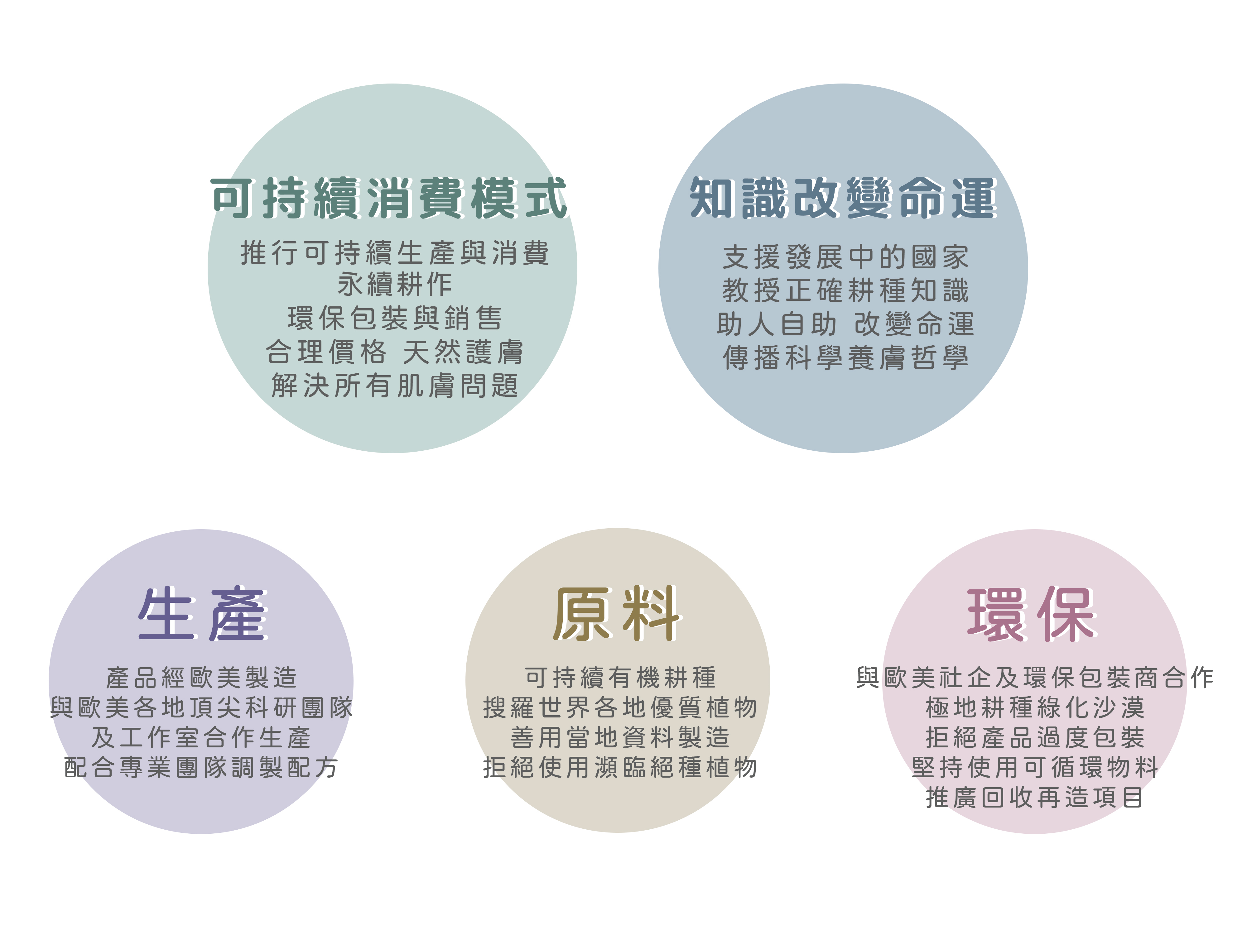 希望各位用家享用優質原材料,提昇護膚體驗的同時綠化沙漠,緩解溫室效應。