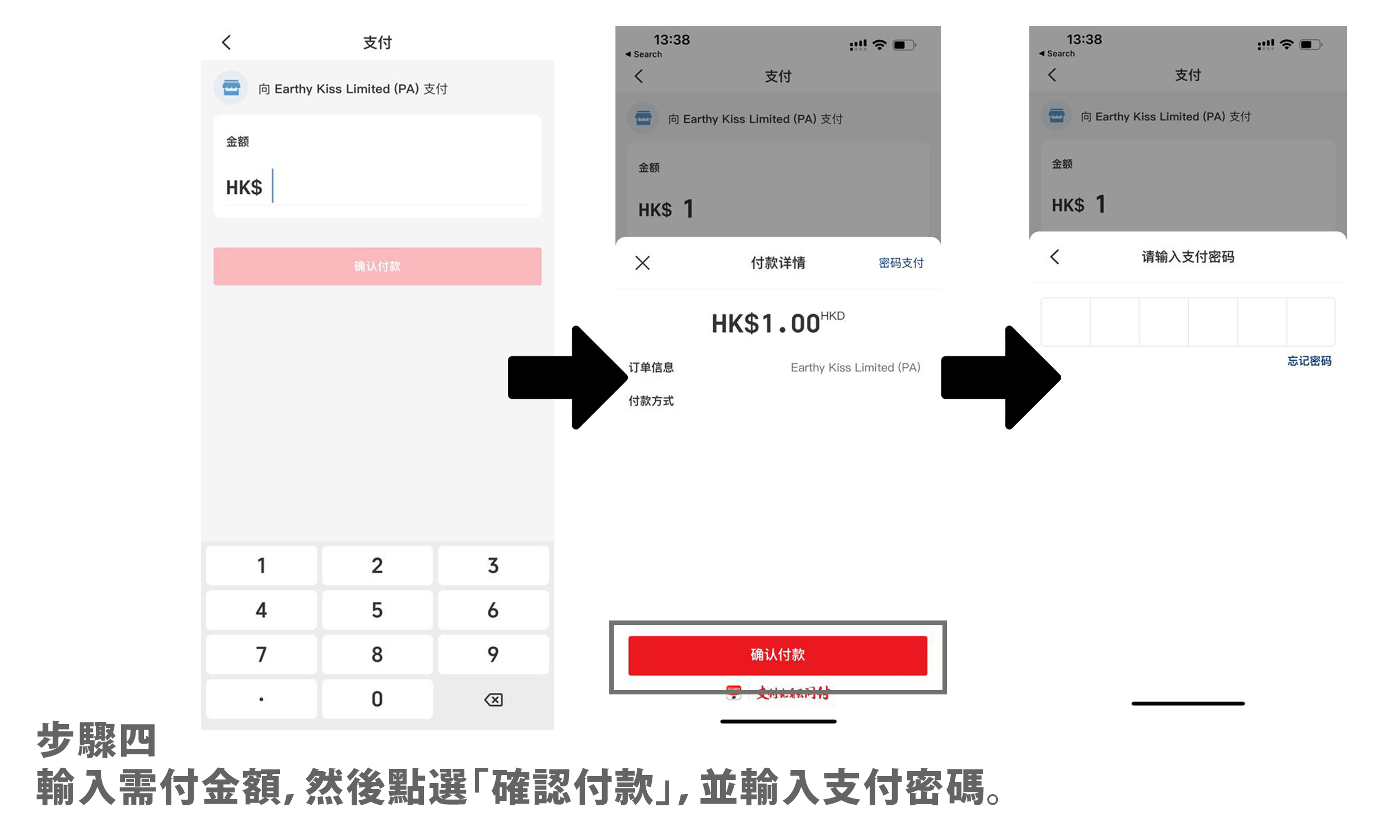 輸入需付金額,然後點選「確認付款」,並輸入支付密碼。