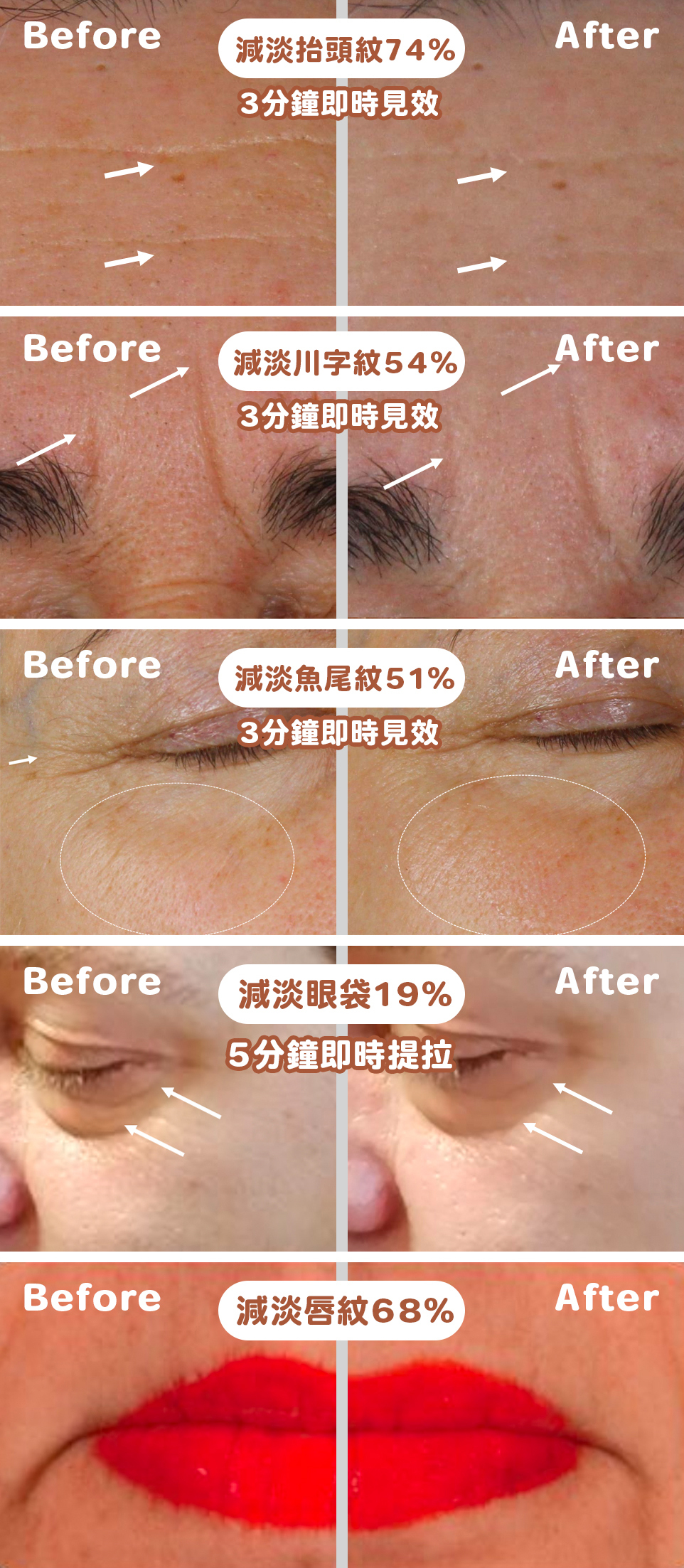多項臨床實證 快速減淡橫紋直紋 緊緻下顎線 告別鬆弛